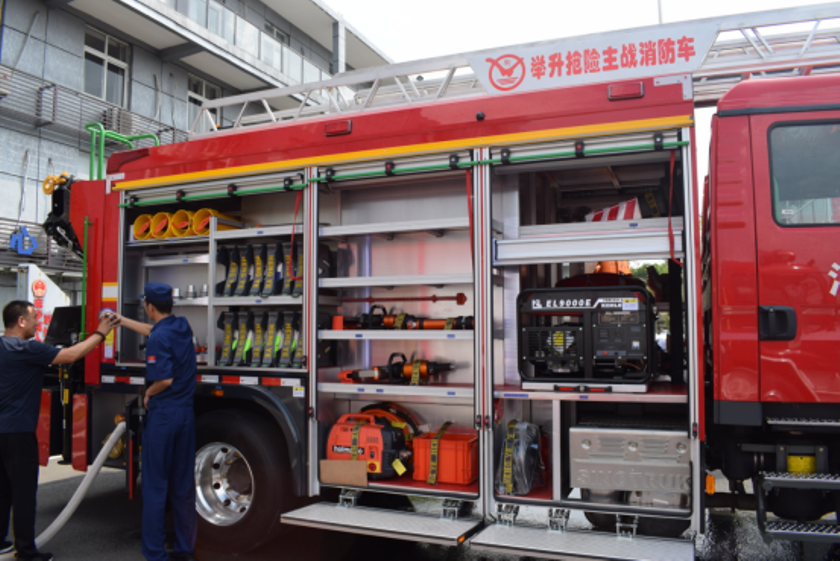 演示結(jié)束后,鎮(zhèn)政府各級領(lǐng)導(dǎo)及平陽縣大隊(duì)領(lǐng)導(dǎo)來到新購的舉升搶險(xiǎn)主戰(zhàn)消防車前,詳 細(xì)參觀、了解消防車輛技術(shù)性能,觀摩了新型消防車輛器材的展示和車輛各種功能操作 演示,并對我公司研制的新產(chǎn)品進(jìn)行了點(diǎn)評,給予了高度的贊許,稱此款車型最大化的 滿足了老舊小區(qū)、狹窄街道、城鄉(xiāng)低建筑物等滅火救援工作的需要。
